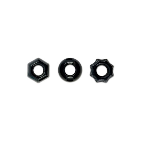 kit anelli fallici in tpe , materiale elastico e morbido . il kit comprende 3 anellini con forma diverse per ognuno.