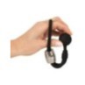 Cinghia nera e robusta per pene/testicoli Heavy Rope Cock Strap with Ball di Rebel in design a corda con elegante peso scorrevole in metallo e peso aggiuntivo a sfera (per un peso totale di 166 g). Può essere regolata individualmente sul pene per beneficiare dell'effetto di congestione sanguigna che favorisce l'erezione. Oppure l'anello in silicone elastico può essere posizionato intorno ai testicoli e stretto con piacere. La versione indossata intorno al pene E ai testicoli è particolarmente ingegnosa. Il peso della sfera oscilla avanti e indietro in modo eccitante con ogni opzione di utilizzo. Equipaggiato (pesantemente) in questo modo, nulla ostacola una lunga e selvaggia cavalcata!
