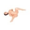 Bambola del sesso. Sdraiata con gambe aperte. Viso stampato e capelli neri.Gonfiabile ad altezza uomo (ca. 1,60 m) e di PVC. Con 3 aperture del piacere (orale, vaginale, anale).