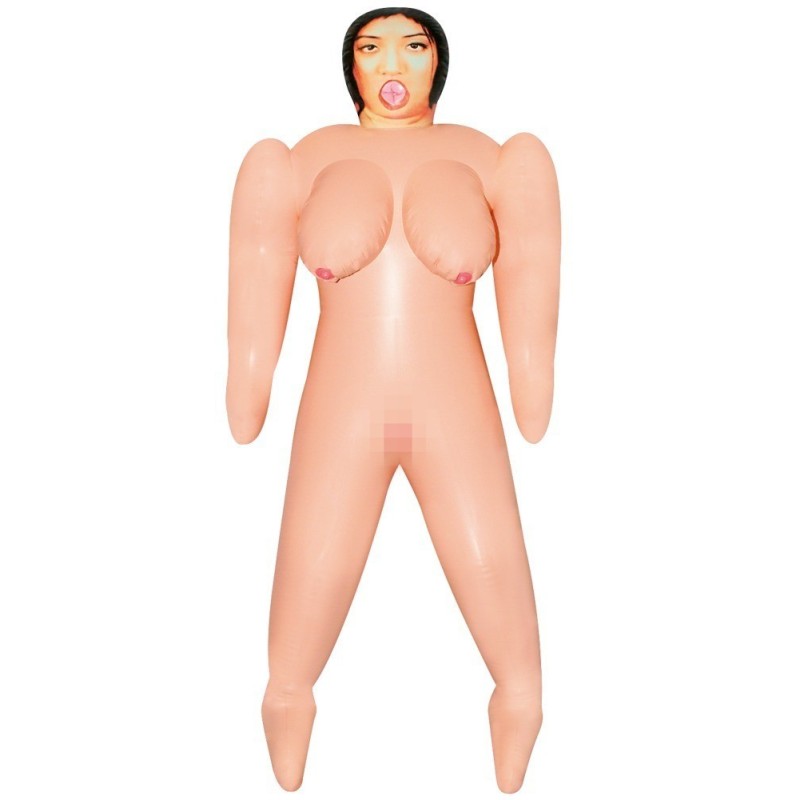 Per tutti coloro a cui piace più lussureggiante! Bambola molto corpulenta (circonferenza seno 135 cm, circonferenza vita 100 cm) con viso stampato e capezzoli duri.Gonfiabile ad altezza uomo (ca. 1,60 m) e di PVC. Con 3 aperture del piacere (orale, vaginale, anale).