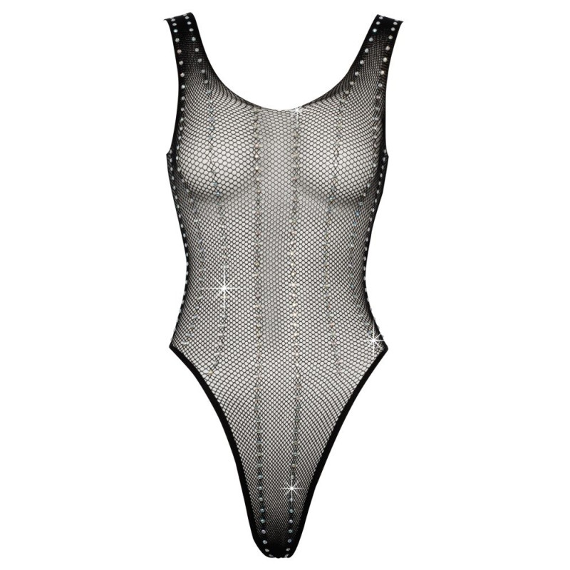 Body tuttofare di Cottelli FANTASY, realizzato in rete fine e morbida con finiture di strass a righe verticali. Uno stile semplicemente bellissimo, con aperture extra alte sulle gambe che mettono in mostra il sedere e le gambe in modo eccitante. Tutti senza cuciture ed elasticizzati per un elevato livello di comfort.