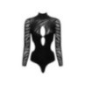 Accogliente body a maniche lunghe di Cottelli FANTASY. Realizzato senza cuciture in pregiato e morbido materiale elasticizzato con colletto elasticizzato. Il top è semitrasparente con un fantasioso motivo a righe intrecciate, per il resto è coprente, anche sul busto. Con splendidi tagli sul davanti e sui fianchi, decorati inoltre con dettagli di strass scintillanti sul davanti. Chiusura con bottoni a pressione sul cavallo.