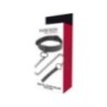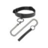 La robusta catena nera è fissata con una chiusura a moschettone a un cerchio sicuro sulla collana ed è combinata con una comoda maniglia.