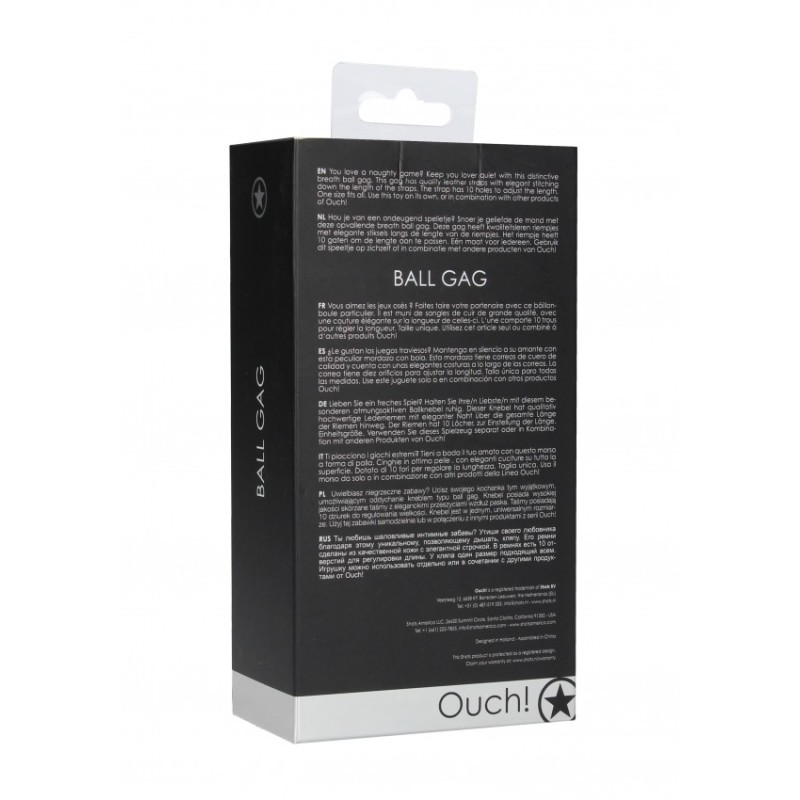 Ti piacciono i giochi estremi? Tieni a bada il tuo amato con questo morso a forma di palla. Cinghie in ottima pelle , con eleganti cuciture su tutta la superficie. Dotato di 10 fori per regolare la lunghezza. Taglia unica. Usa il morso da solo o in combinazione con altri prodotti della Linea Ouch!