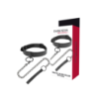 La robusta catena nera è fissata con una chiusura a moschettone a un cerchio sicuro sulla collana ed è combinata con una comoda maniglia.