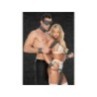 Il kit è composto da : manette da polso e da caviglia, mascherina per gli occhi, bavaglio a palla traspirante, collare con guinzaglio, paletta, flogger, pugnale e dadi.