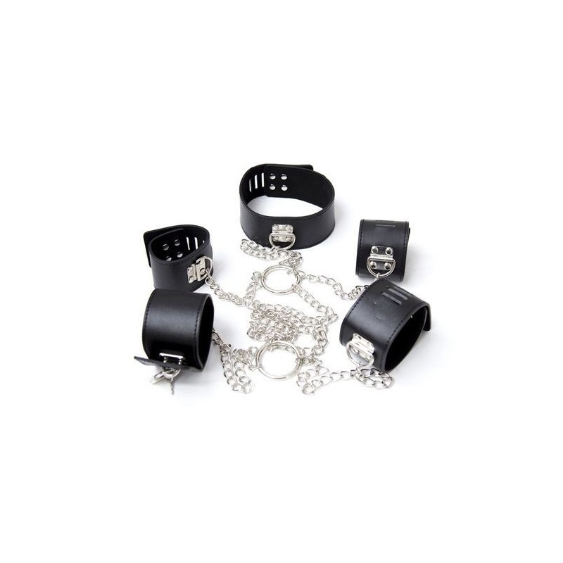 Cosa è? Un costrittivo realizzato in similpelle e catene, composto da collare, polsiere e cavigliere, che può tenere bloccato tutto il corpo. Un oggetto di costrizione bdsm che vi farà realizzare le vostre fantasie di dominazione, anche quelle più inconfessate. Con Fetish Art non c’è budget che tenga, potrete sperimentare ogni vostro più recondito desiderio. A Cosa serve? Potrete sottoporvi al volere del vostro partner, piegandovi al suo desiderio di comando oppure regalarvi un emozione di dominio con questo splendido oggetto fetish, un oggetto di costrizione totale e accattivante. Movimenterete non poco le vostre serate grazie a questo favoloso oggetto erotico costrittivo con collare che limita la mobilità degli arti, trasformando chiunque lo indossi, in un animale del sesso, tenendolo costantemente sotto controllo! Con questo strumento per le pratiche sadomaso potrete stabilire un gioco slave-master forte, in cui decidere di abbandonarvi al volere del partner oppure, al contrario, comandarlo voi. Come si usa? Basta semplicemente legare il collare intorno al collo e le rispettive polsiere e cavigliere del bottom, il risultato sarà una sorta di blocco totale degli arti, proprio come si fa con gli animali, uno strumento di piacere estremo. Dopo l’utilizzo, pulire il sex toy con un panno igienizzante.