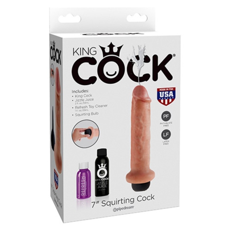 Questo King Cock Squirter è un fallo ultra-realistico perchè è in grado di soddisfare tutte le vostre voglie di giochi liquidi! Fatto a mano con sorprendente attenzione ai dettagli e con la nostra esclusiva pompetta Jizzle, i King Cock Squirter sono i dildo che eiaculano più efficaci sul mercato! Ogni King Cock Squirter è privo di ftalati, privo di lattice, ipoallergenico, e orgogliosamente made in USA.