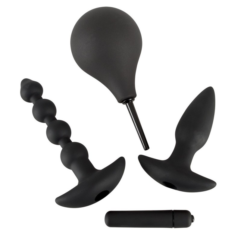 Contenuto: spina, corda a sfera, doccia intima e vibratore, che può essere inserito nella spina e nella corda. Spina lunga circa 15 cm, Ø 2,1-3,5 cm, spago lungo circa 18 cm, Ø 1,2-3 cm, doccia intima lunga circa 17 cm, tubo di inserimento della doccia lungo circa 5,5 cm, Ø 6-9 mm. Materiale: silicone, ABS, PVC. (Si prega di ordinare la batteria separatamente: 1 x Micro/AAAA)