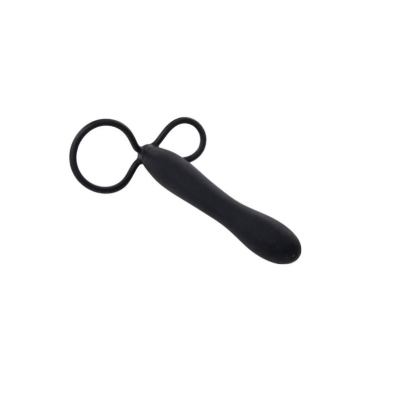 Particolare oggetto da inserire tra il pene e i testicoli dell'uomo per penetrare contemporaneamente la vagina e l'ano della donna. Questo strumento in materiale Tpr colore nero e dotato di due anelli uno da passare sulla base del pene di 3 cm e l'altro sui testicoli di 5 cm .