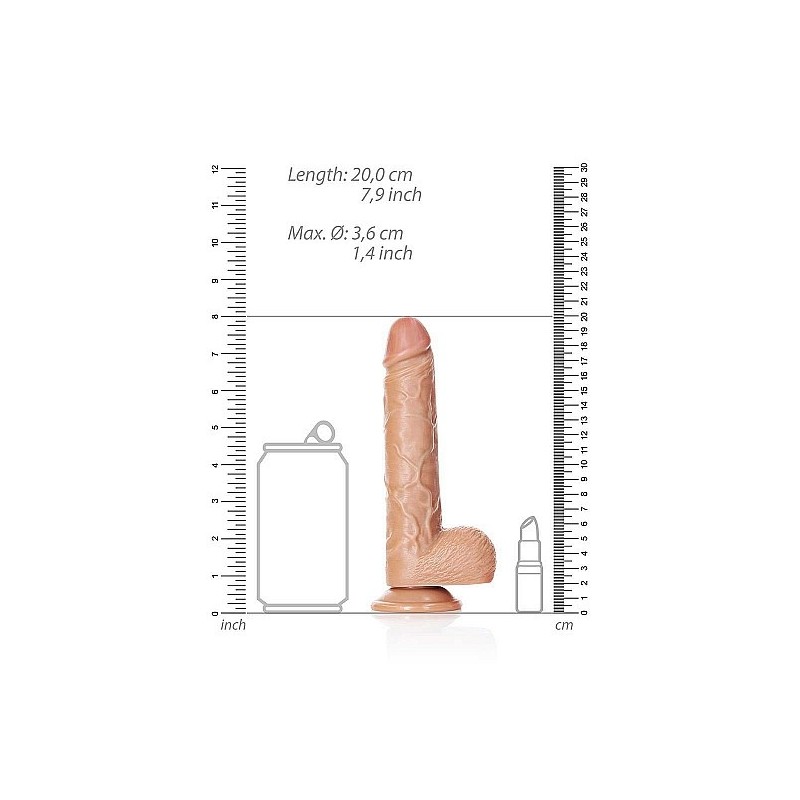 Il Real Rock è progettato per farti divertire al massimo. Un dildo solido e morbido al tatto, dall'aspetto naturale e delle dimensioni giuste. In combinazione con le vene realistiche sull'asta, che danno una stimolazione extra all'interno, questo è un dildo che non dimenticherai nel tuo comodino. Questo dildo realistico è perfettamente dritto per una penetrazione profonda. Lo scroto e il glande ben proporzionato sono i dettagli che rendono l'utilizzo di questo dildo così realistico. La ventosa consente un uso resistente a mani libere (su una superficie liscia) e offre anche la possibilità di utilizzare questo RealRock in un'imbracatura. Con tutte queste opzioni, avrai un orgasmo esplosivo a cui non mancherà nulla.