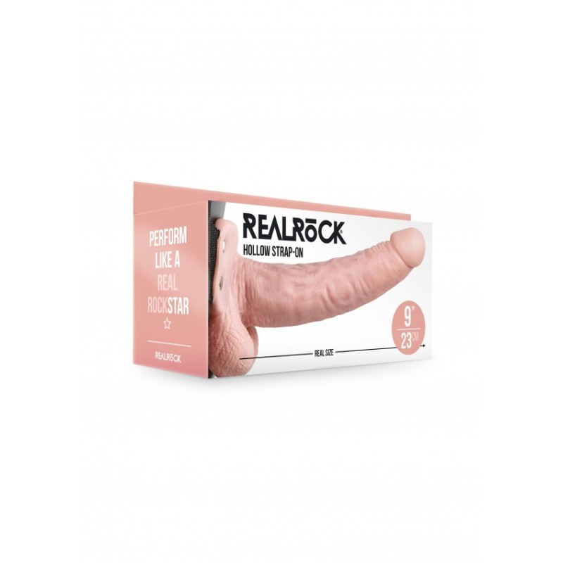 Fallo cavo indossabile Hollow Strap-on with Balls - 9'' / 23 cm - Flesh