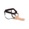 Allunga il pene di 5 cm! Dildo naturale cavo su un elastico, con glande pieno e sodo, che allunga il pene di 5 cm. Il dildo strap-on è l'ideale per l'uomo che vuole più lunghezza e circonferenza oltre che più rigidità e forza del suo pezzo migliore. Inoltre, il partner si sente completamente riempito vaginalmente durante il rapporto sessuale. Lunghezza totale dildo 16 cm, profondità di inserimento 11 cm, Ø esterno 4 cm, Ø interno 3,5 cm. Prolunga di 5 cm attraverso il glande fisso. Anello del testicolo Ø 3,5 cm. Cintura anca con chiusura a velcro lunga min. 70 cm (molto elastica), cinghie con chiusura a scatto lunghe min. 37 cm. Dildo: silicone con rivestimento in PU; bande: 70% poliestere, 30% lattice. I nastri sono realizzati con lattice di gomma naturale, che può causare allergie.