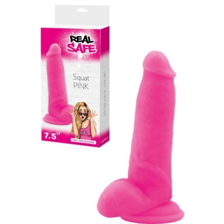 Dildo Fallo realistico Vaginale con testicoli ventosa in silicone squad Pink . Fallo con testicoli in puro silicone pregiato di prima qualità , dalla consistenza e forma realistica ed unica . La principale principale di questo dildo realistico risiede nelle sue dimensioni, ideali e appaganti, e nel materiale di realizzazione: pregiato silicone, sicuro e seducente come nessun?altro. E? sufficiente chiudere gli occhi e toccarlo per rendersi conto di trovarsi dinanzi ad un oggetto erotico dal realismo supremo. La forma con le venature, la morbidezza e la flessibilità ricordano in tutto e per tutto un pene reale. Realizzato in silicone di qualità, è anallergico, sicuro e delicato anche sulle pelli più sensibili. il fallo Large ReaL Safe è anche un oggetto innovativo e cool, infatti è possibile scegliere tra diverse colorazioni che lo rendono anche un oggetto del piacere pop, adatto alle giovani coppie. La ventosa alla base, forte e resistente, vi permetterà di giocare, su qualsiasi superfice liscia, in perfetta solitudine sperimentando posizioni nuove in completa libertà e senza l?ausilio delle mani. Avrete solo l?imbarazzo della scelta tra misure diverse, tutte realisticamente soddisfacenti, e colori accattivanti. Real Safe, un dolce diletto realistico in tutta sicurezza.