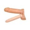 Dildo falllo indossabile . Realizzato in materiale flessibile in colore naturale (carne chiaro) (ca. 16 cm di lunghezza, Ø 2,5 cm) che può essere fissato con un‘asola per il pene (Ø 3 cm) e con un‘altra per i testicoli (Ø ca. 5 cm, espandibile) come „secondo pene“! Nero. Materiale: TPR.
