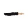 Tappo anale in vetro dorato, trasparente e infrangibile, con una piccola base all'estremità, alla quale è attaccata una coda di pelliccia finta nera. Lunghezza totale circa 12 cm. Profondità di inserimento: 10,5 cm, diametro: 2,1-3,8 cm. Coda di finta pelliccia: lunga circa 28 cm. Materiale: vetro, acrilico.