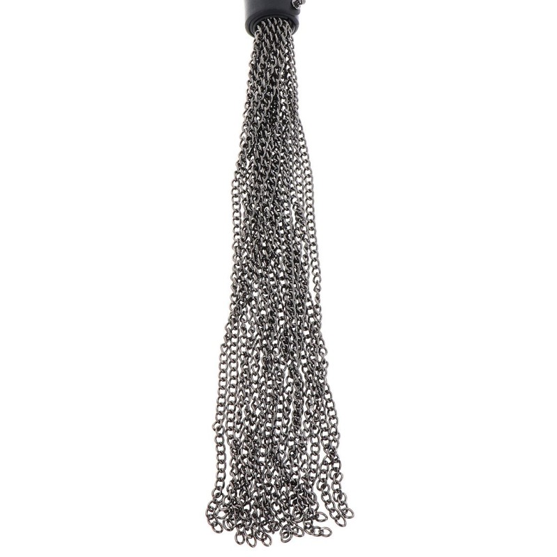 Elevate il vostro gioco con la frusta a catena in vera pelle. Dotato di una robusta impugnatura in pelle e di molteplici code di catena in metallo, questo frustino offre sensazioni intense ad ogni colpo. La combinazione di pelle pregiata e metallo crea un'esperienza audace e indimenticabile, perfetta per gli utenti più avventurosi.