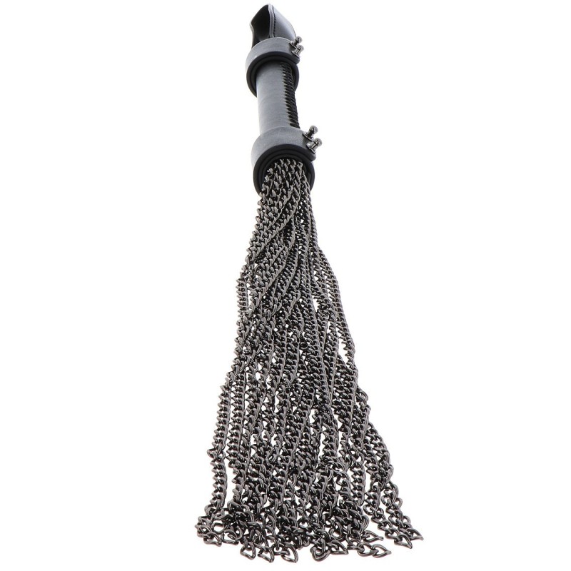 Elevate il vostro gioco con la frusta a catena in vera pelle. Dotato di una robusta impugnatura in pelle e di molteplici code di catena in metallo, questo frustino offre sensazioni intense ad ogni colpo. La combinazione di pelle pregiata e metallo crea un'esperienza audace e indimenticabile, perfetta per gli utenti più avventurosi.