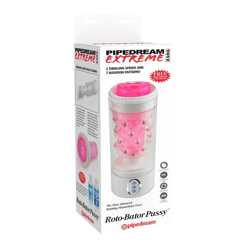 Preparati per il masturbatore rotante più incredibile, più intenso e più avanzato mai immaginato! Roto-Bator è il masturbatore potenziato che fa tutto il lavoro per te! Non dovrai più pompare, accarezzare o spremere: basta premere un pulsante e goderti una stimolazione strabiliante sviluppata per farti venire più forte che mai! A differenza dei comuni stroker che si muovono a malapena su e giù, il meccanismo di rotazione avanzato del Roto-Bator dà un nuovo impulso alla masturbazione maschile! Ad ogni giro della morbida custodia in TPR, file di perline di metallo posizionate strategicamente massaggiano delicatamente ogni pollice della tua canna da piacere sotto uno strato strutturato di TPR. La manica super morbida avvolge le aree sensibili del tuo cazzo mentre centinaia di piccoli solleticatori prendono in giro e, per favore, trasmettono sensazioni formicolanti alla colonna vertebrale che nemmeno una vera bocca potrebbe riprodurre! Ottieni una soddisfazione strabiliante quando vuoi, per tutto il tempo che vuoi, senza alcun vincolo!