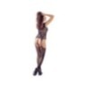 Giarrettiera nera lingerie Mandy Mystery con calze elastiche intrecciate - senza cuciture. Con motivo e spalline larghe. Incluso perizoma in pizzo