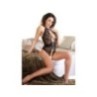 Body intimo donna seducente con trama simil pizzo nero, scollatura profonda e apertura ampia nella zona intima. Body con eleganti dettagli brillanti in vita e al collo, formato dal 90% di poliammide e il 10% di elastan. Per momenti piccanti pieni di seduzione.