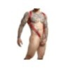 L'imbracatura a spalla con schiena dritta è un'imbracatura dall'aspetto classico. Le cinghie sono molto larghe e includono punte di metallo. Le cinghie scendono fino a un anello a C in metallo. Taglia unica Elastica e regolabile Anelli in metallo