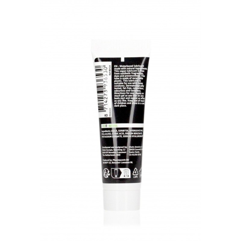 Lubrificante a base d'acqua realizzato con ingredienti naturali. Questo lubrificante vegano è privo di profumi sintetici, coloranti e conservanti e la confezione è realizzata in plastica riciclata. Adatto all'uso con preservativi in lattice. Testato dermatologicamente, senza grassi, incolore, inodore e insapore. Istruzioni d'uso: applicare la quantità desiderata di gel sulla zona del corpo di preferenza e ripetere per quante volte lo si desidera. Tenere fuori dalla portata dei bambini. Conservare in luogo riparato e asciutto.
