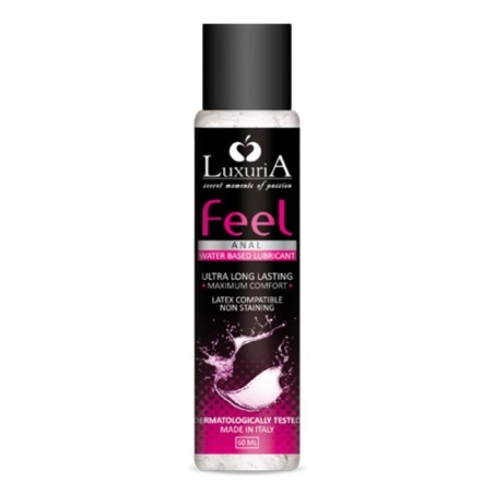 Lubrificante Anale sessuale Feel Anal 60 ml Luxuria Feel Anal è un lubrificante intimo unisex a base acquosa specifico per l'idratazione e la lubrificazione anale prima del rapporto intimo. Non unge, non contiene grassi. Grazie alla sua esclusiva formulazione ricca di preziosi elementi attivi naturali Luxuria Feel Anal previene fastidi, bruciori ed irritazioni tipiche delle zone intime sottoposte a stress naturali e prolungati. Prodotto idrosolubile. Può essere usato in modo sicuro con oggetti e dispositivi in lattice, la sua formula a base acquosa ne garantisce una totale compatibilità con i preservativi. Applicare la quantità desiderata di Luxuria Feel Anal sulla parte del corpo desiderata o su un sex toy e massaggiare. Latex Compatibile Dermatologicamente testato