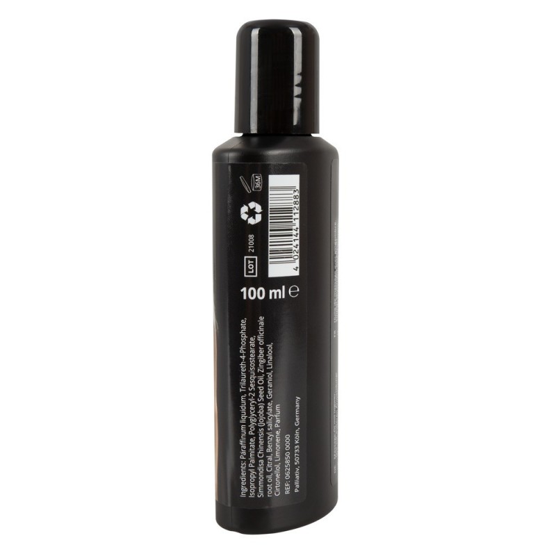 Per eccitanti massaggi di coppia! Olio da massaggio erotico di alta qualità con lubrificazione di lunga durata. Con un fine profumo di zenzero speziato che risveglia tutti i sensi e ti fa desiderare di più. Molto produttivo, solubile in acqua e lavabile. Senza conservanti. Prodotto in Germania.100 ml. Ingredients Paraffinum liquidum, Trilaureth-4-Phosphate, Isopropyl Palmitate, Polyglyceryl-2 Sesquisostearate, Simmondisa Chinensis (Jojoba) Seed Oil, Zingiber officinale root oil, Citral, Benzyl salicylate, Geraniol, Linalool, Cirtonellol, Limonene, Parfum