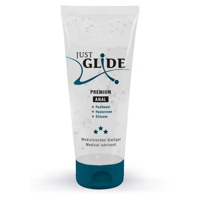 Just Glide Premium Anal on è 100% vegano e lavabile. Preservativo in lattice sicuro. Inodore e insapore. Il pantenolo contenuto ha un effetto lenitivo e rigenerante della barriera cutanea. L'acido ialuronico ha un effetto idratante e crea una consistenza extra liscia del gel. L'olio di silicone contenuto contribuisce ad un'estrema scorrevolezza, che porta ad un risultato più che piacevole soprattutto sulla porta posteriore.
