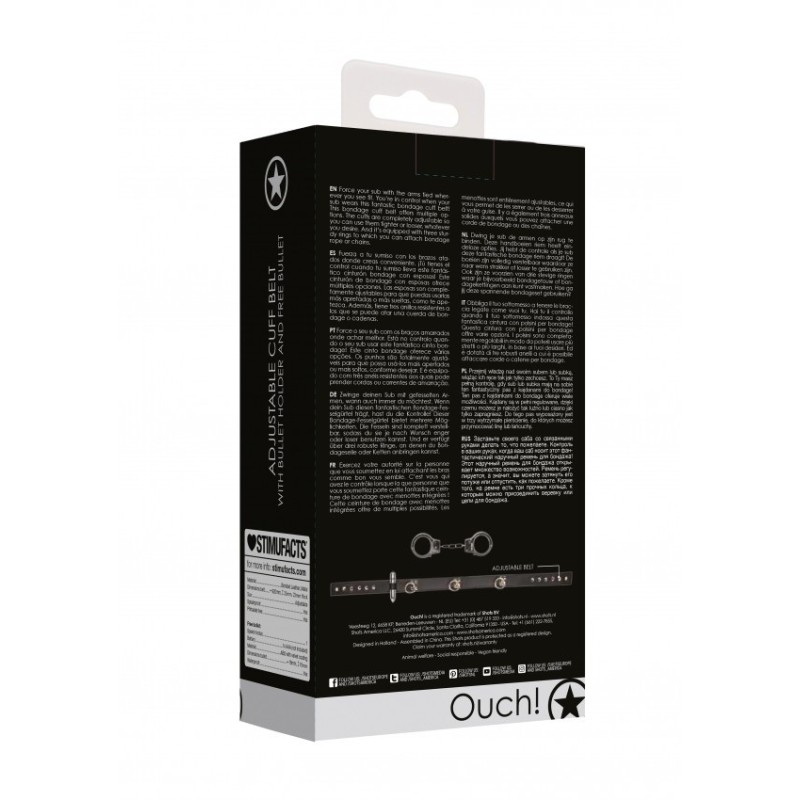 Obbliga il tuo sottomesso a tenere le braccia legate come vuoi tu. Hai tu il controllo quando il tuo sottomesso indossa questa fantastica cintura con polsini per bondage! Questa cintura con polsini per bondage offre varie opzioni. I polsini sono completamente regolabili in modo da poterli usare più stretti o più larghi, in base ai tuoi desideri. Ed è dotata di tre robusti anelli a cui è possibile attaccare corde o catene per bondage. Misure bullet : 9,3 x 1,5 cm
