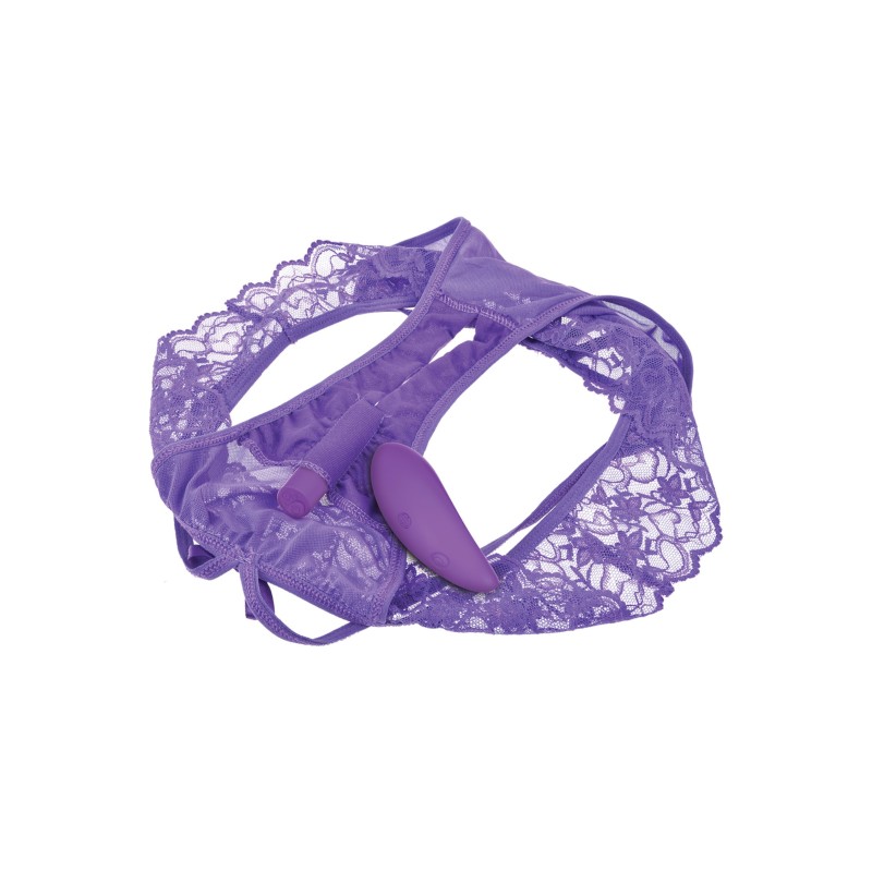 Perizoma con stimolatore vaginale con be 20 modalità di vibrazione . potrete azionare il modulo vibrante anche a distanza grazie al telecomando . Perizoma indossabile su un giro vita da 76 cm a 107 cm taglia unica dalla 36 alla 46 .