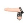 Cinghia per pene e testicoli con divisore per testicoli in pelle maschile. Con anello a D sul divisorio dei testicoli per attaccare dei pesi (non inclusi) o un guinzaglio guida (non incluso). Tutte le cinghie e il divisorio sono regolabili con bottoni a pressione per una perfetta vestibilità.