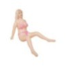 Bambola d'amore seduta con 3 canali del piacere e gambe lascivamente piegate. Emozionante con occhi marroni e lunghi riccioli biondi. Inoltre, offre un ampio busto con sensuali capezzoli duri, che fa battere più forte il cuore degli uomini. È incluso anche un bikini rosa.