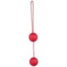 Due sfere rosse con occhiello di ritiro: inserire e muovere leggermente - in questo modo le sfere posizionate internamente fanno vibrare il vostro addome! E inoltre si esercitano i muscoli vaginali! Ø sfera: 3,5 cm. Lunghezza complessiva: ca. 23 cm. Con rivestimento morbido. Materiale: ABS, rivestimento PU.