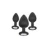 Apri la porta alle emozionanti sensazioni anali con il kit per esercizi anali con gemme di silicone. Questo kit glamour include un set di 3 plug anali graduati con base in gemma per consentirti di aumentare la stimolazione anale appassionata in modo sicuro e confortevole. Per godere di tutto ciò che l'esaltante mondo del gioco anale ha da offrire, l'allenamento serve a garantire totale sicurezza e soddisfazione. Ogni sonda nel nostro kit aumenta gradualmente in lunghezza e circonferenza per un piacere superbo a qualsiasi livello di gioco. Mentre ogni aumento del tuo allenamento espande i tuoi orizzonti, usa la base decorata con gemme scintillanti per una stimolazione vaporosa, un inserimento senza sforzo e una rimozione delicata. Le sonde flessibili sono realizzate in silicone con finitura satinata liscia e senza giunzioni. Questo materiale sicuro per il corpo è inodore e privo di ftalati per mantenere i punti più sensibili sani