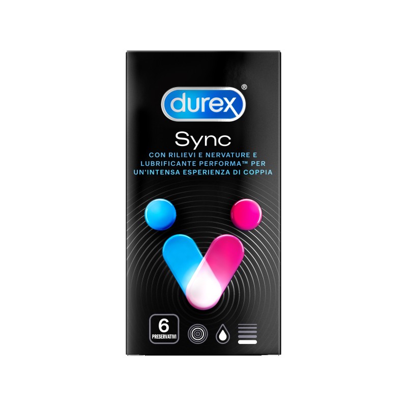 Dall'innovazione Durex, un nuovo prodotto per rivoluzionare il concetto del piacere. Con un mix incontrastato di ricerca, innovazione e qualità, Durex interpreta le esigenze del mercato e le traduce in risposte ideali per soddisfare i desideri dei consumatori alla ricerca di un completo benessere sessuale. Noi lo sappaiamo...donne e uomini sono differenti, raggiungono l'orgasmo in tempi diversi. Grazie a Sync, il piacere della coppia ha lo stesso fuso orario.