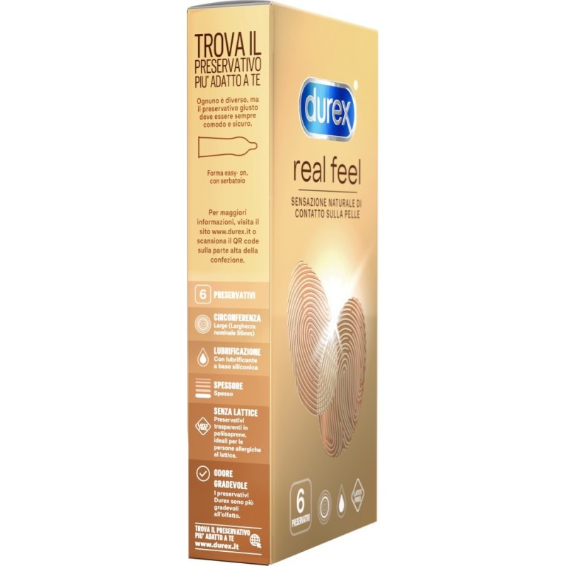 Durex Real Feel è un preservativo realizzato con un materiale tecnologicamente avanzato che permette un alto livello di trasmissione termica, è trasparente ed elastico. La forma easy-on rende inoltre questo profilattico molo comfortevole.