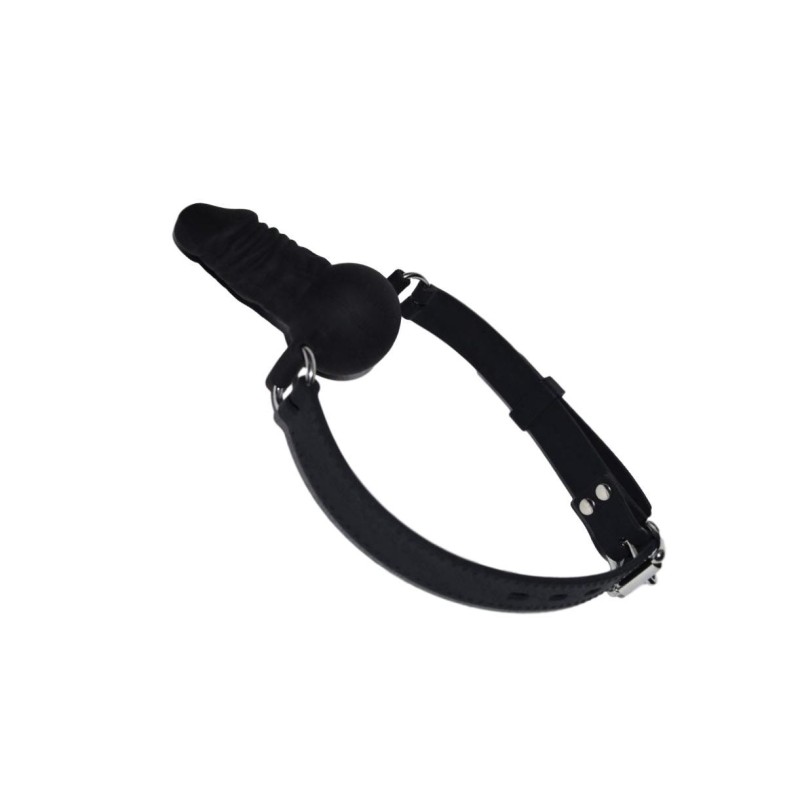 Bavaglio nero a forma di pene naturale su cinturino regolabile. Pene di lunghezza totale 9,5 cm, Ø 3 cm. Materiale: silicone,costringe alla soddisfazione sottomessa. Bavaglio nero a forma di pene naturale su cinturino regolabile. Extra skin-friendly: completamente in silicone! Pene di lunghezza totale 9,5 cm, Ø 3 cm. privo di ftalati secondo il Regolamento UE 1907/2006 / CE