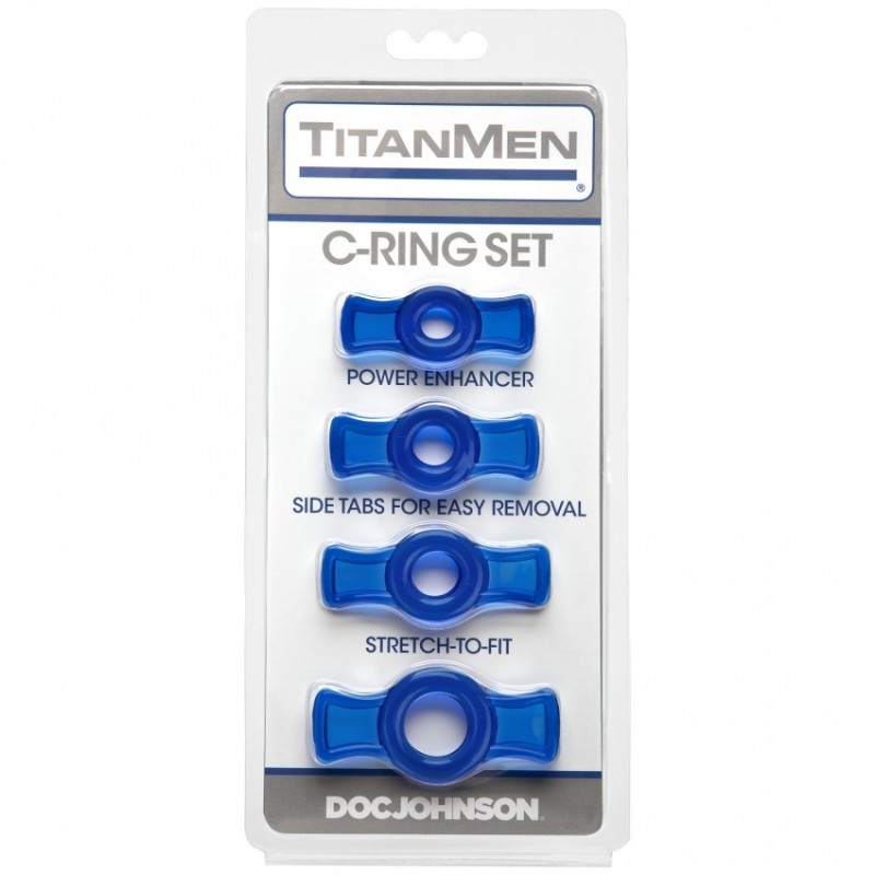 Gli anelli sono facili da posizionare e rimuovere, anche con le mani scivolose, perché ogni linguetta presenta un bordo spesso che consente di regolare gli anelli con facilità. Il set di anelli per il pene TitanMen Tools è realizzato in TPR non ftalato ed è disponibile nei colori nero, blu e trasparente, acquistabili a parte.