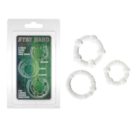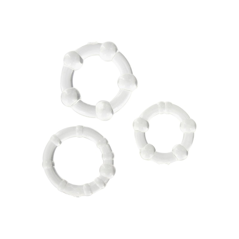 Se volete regalare alla vostra partner un paio di ore particolarmente piacevoli, dovreste provare assolutamente un anello per pene. Da una parte si rafforza e prolunga enormemente la vostra erezione grazie alla super-aderenza. Dall’altra voi e la vostra amata avrete stimolazioni aggiuntive. Diversi inspessimento agli anelli li rendono particolarmente eccitanti! Utilizzabili singolarmente o in combinazione. Ø 2-2,5 cm (espandibile). Clear. Materiale: TPE.