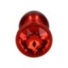 Plug anale in alluminio laccato rosso intenso con un gioiello incastonato alla base. Punta arrotondata per un graduale inserimento, facile presa e maneggevolezza. Totalmente liscio e con classica forma a goccia.