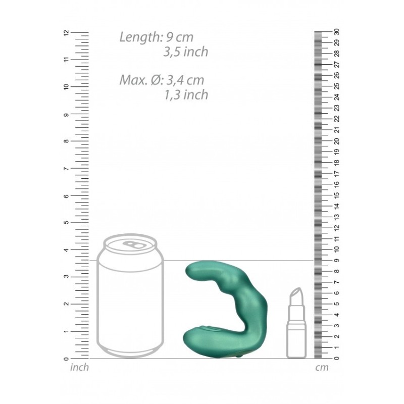 Migliora il tuo piacere con il massaggiatore prostatico vibrante piegato. Con la sua forma unica con perline e leggermente piegata, questo vibratore in silicone verde metallizzato è specificamente progettato per fornire sensazioni strabilianti in tutto il corpo. Il telecomando consente a te o al tuo partner di navigare senza sforzo attraverso i 10 potenti modelli di vibrazione senza interrompere il gioco. Applicare il lubrificante per una scorrevolezza fluida. Che tu sia un principiante o un utente esperto, la varietà di forme e dimensioni disponibili soddisfa le diverse preferenze. Realizzato in silicone sicuro per il corpo e privo di ftalati. Preparati a sperimentare il potere dell'orgasmo prostatico con OUCH! Stimolatori della prostata.
