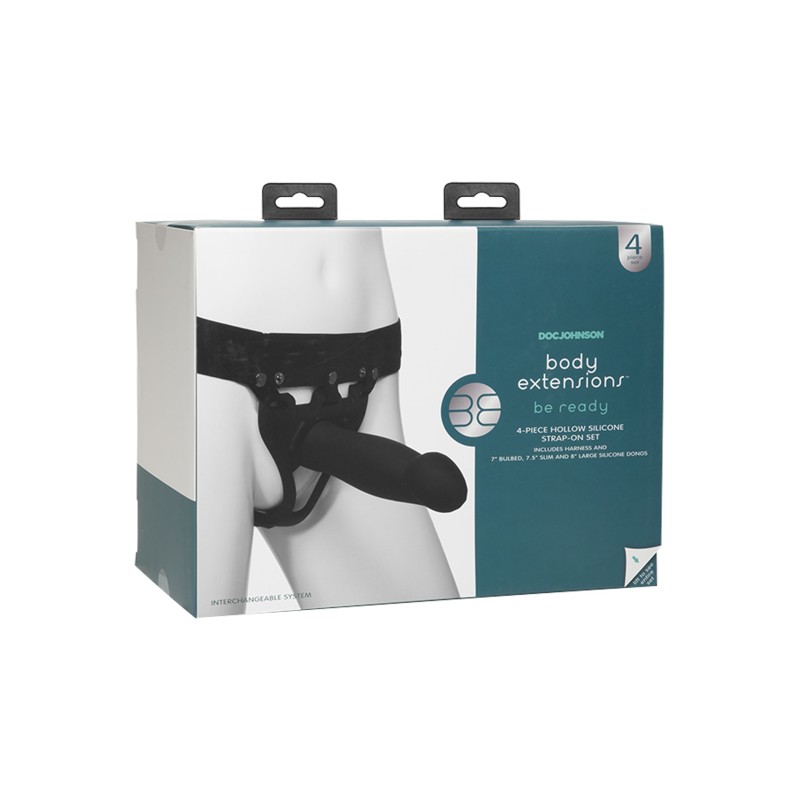 Sii tutto ciò che vuoi essere. Il Body Extensions Hollow Strap-On System di Doc Johnson è una collezione unisex di imbracature e attacchi in silicone cavo progettati per stimolare il corpo e consentire il gioco di penetrazione indipendentemente dal tipo o dalla funzione dell'anatomia di chi lo indossa. Questo set di 4 pezzi di alta qualità comprende un'imbracatura elastica e in silicone premium progettata per il massimo comfort e durata e tre attacchi in silicone premium realizzati per massimizzare il piacere sessuale e il potere di ogni utente. Ogni prodotto della collezione Body Extensions include istruzioni dettagliate per la cura e l'uso.