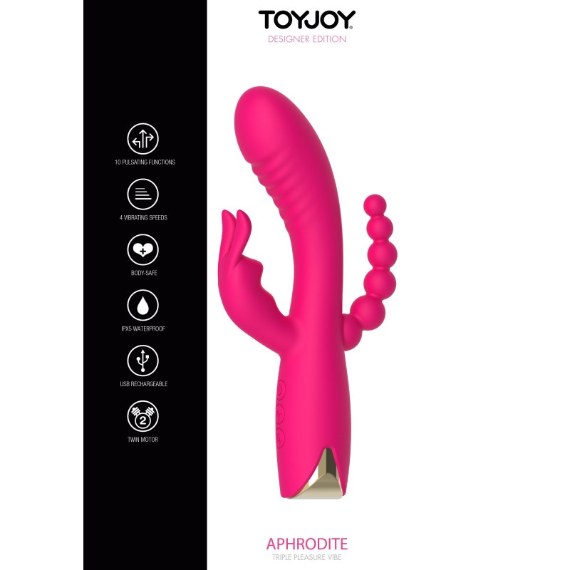 Sperimenta l'esperienza definitiva del piacere con Afrodite, il vibratore a triplo piacere della collezione TOYJOY Designer Edition. Progettata per soddisfare ogni tuo desiderio, Afrodite offre una suprema triplice stimolazione per orgasmi mozzafiato e potenti. Dotato di un sistema a doppio motore, questo vibratore regala vibrazioni intense che ti lasceranno senza fiato. Esplora la gamma di velocità multiple e funzioni pulsanti per personalizzare la tua esperienza di piacere. Preparati a sbloccare un piacere senza pari e intraprendere un viaggio di estasi sensuale con Afrodite.