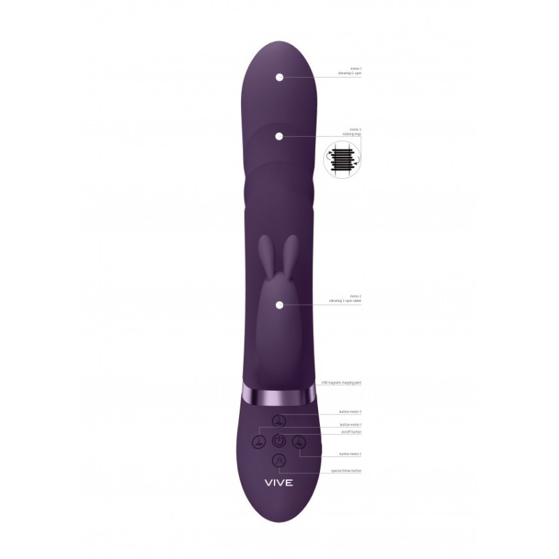 Il VIVE053 è uno dei vibratori più innovativi e potenti oggi sul mercato. Grazie ai suoi tre innovativi motori F1 di Nuova Generazione con 10 funzioni e alle sue tecnologie avanzate (tutti e tre i motori possono essere controllati in modo indipendente) è davvero il top del top! La punta vibrante contiene un motore vibrante NG F1 a 10 funzioni per la stimolazione del punto G, l'asta contiene contemporaneamente un esclusivo motore a sferetta rotante NG F1 a 10 funzioni. Aggiungi un motore clitorideo vibrante NG F1 a 10 funzioni e questo vibratore ti farà sicuramente girare la testa. In totale, questo giocattolo offre 1.000 diverse combinazioni. Realizzato in silicone di grado medicale liscio come la seta (ipoallergenico), è totalmente impermeabile (IPX7) ed estremamente silenzioso, essendo sotto i 60 dB. Ciò significa che puoi usarlo ovunque il tuo cuore desideri. Comprende una batteria agli ioni di litio ricaricabile USB magnetica che, quando completamente carica, garantisce 100 minuti di divertimento passionale. Basta collegare, caricare e giocare! Quando ti stai avvicinando all'orgasmo, un solo tocco del pulsante della funzione speciale climax porterà immediatamente tutti i motori a piena potenza e, cosa più importante, ti porterà a un orgasmo sconvolgente. Tutti i vibratori VIVE hanno una garanzia completa di 1 anno per proteggere il tuo investimento.