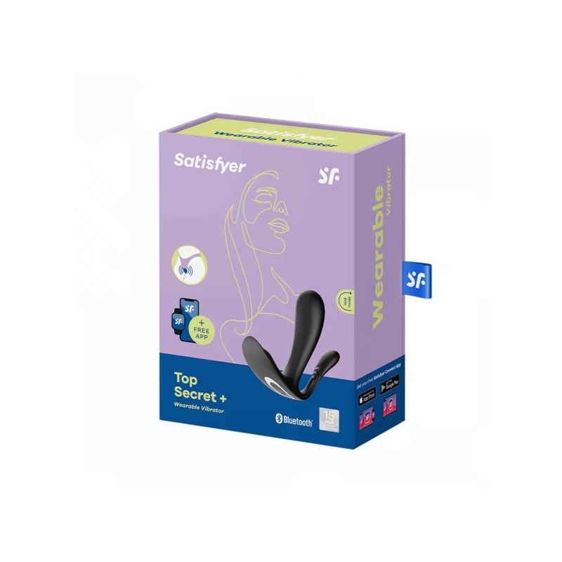 Il Satisfyer Top Secret+ con controllo tramite app garantisce una sensuale stimolazione anale e del punto G anche fuori casa. Come vibratore portatile, fornisce vibrazioni intense sia al punto G che al lato B: ciò è garantito dai due motori, che si trovano nell'asta più grande e in quella più stretta e leggermente strutturata. Grazie alla base appiattita, questo vibratore per slip può essere indossato con discrezione anche fuori casa. Ti delizierà sempre e ovunque con silenziosa intensità. Il Satisfyer Top Secret+ può essere controllato sia tramite l'intuitivo pannello di controllo integrato sulla base sia tramite l'app gratuita Satisfyer Connect. L'app per Android e iOS ti offre molte opzioni per portare i tuoi rapporti sessuali a un livello superiore. Con l'app non solo puoi controllare il tuo Satisfyer in tutto il mondo tramite Internet, ma anche goderti le vibrazioni musicali o le vibrazioni ambientali, ad esempio mentre indossi il Satisfyer Top Secret+!