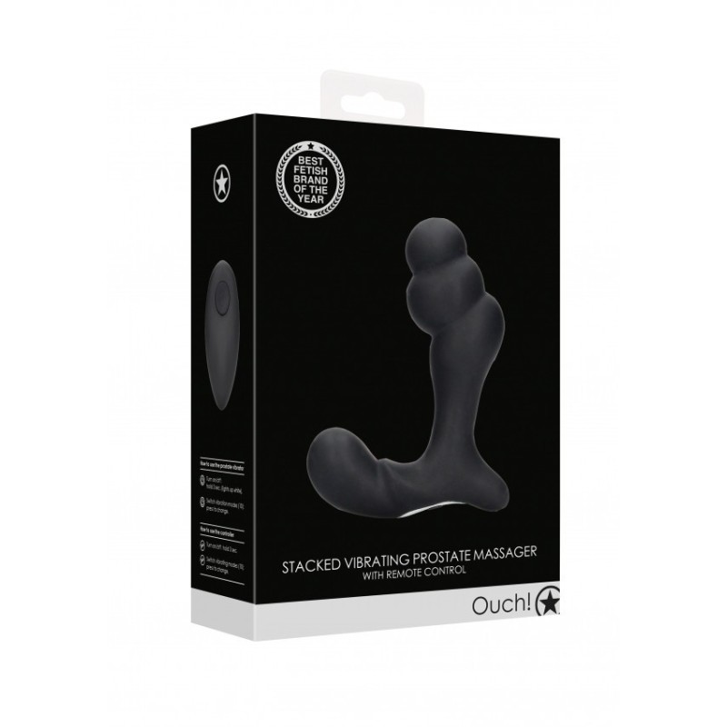 Questo massaggiatore vibrante per la prostata impilato nero. è progettato per sbloccare livelli inesplorati di estasi. L'innovativa forma a bulbo impilato fornirà una stimolazione mozzafiato che trascende le tue aspettative. Il telecomando consente a te o al tuo partner di navigare senza sforzo attraverso i 10 potenti modelli di vibrazione senza interrompere il gioco. Applicare il lubrificante per una scorrevolezza fluida. Che tu sia un principiante o un utente esperto, la varietà di forme e dimensioni disponibili soddisfa le diverse preferenze. Realizzato in silicone sicuro per il corpo e privo di ftalati. Preparati a sperimentare il potere dell'orgasmo prostatico con OUCH! Stimolatori della prostata.