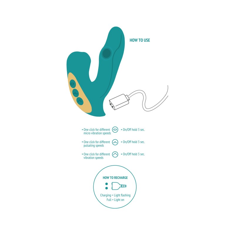 Sperimenta orgasmi forti e intensi con il vibratore ETERNAL LOVE. Questo vibratore giocoso presenta tre funzioni strabilianti, le vibrazioni nell'asta massaggiano la parete vaginale, la funzione pulsante stimola il punto g e le micro vibrazioni nello stimolatore offrono un piacere beato al clitoride. Preparati per un orgasmo strabiliante e se diventa troppo intenso, puoi utilizzare tutte le funzioni separatamente.