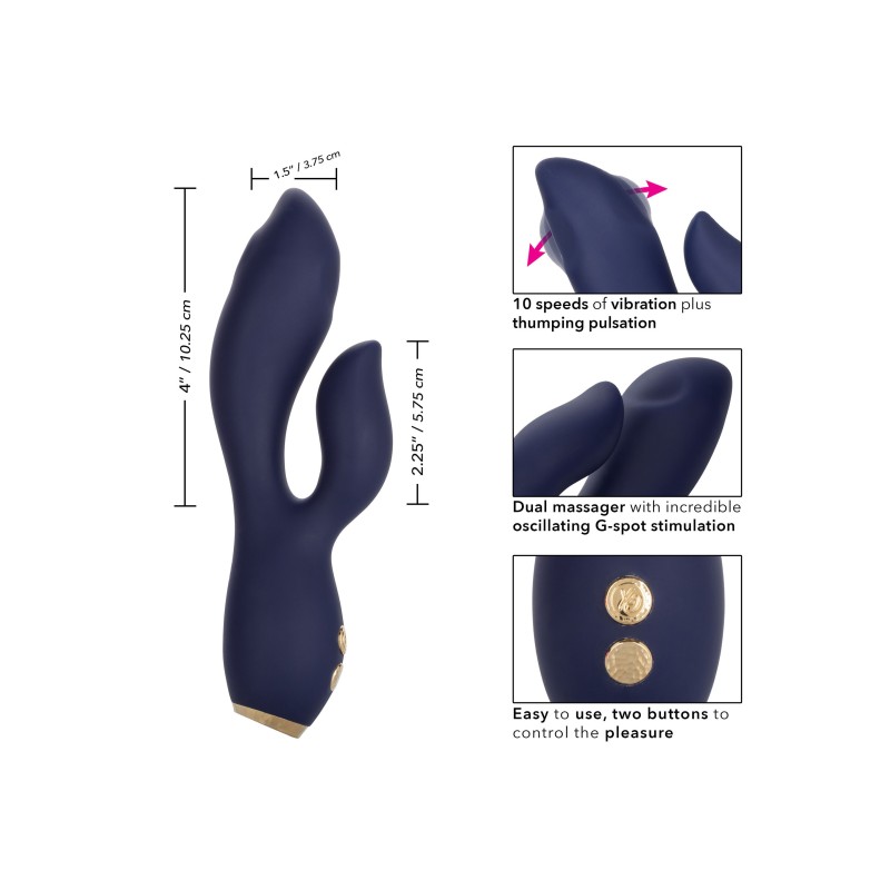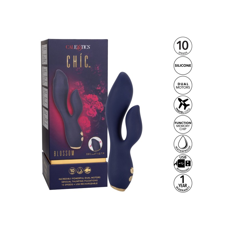 Sofisticato, sofisticato e potente, lo Chíc Blossom è fatto per guidarti verso un piacere lussuoso. Il doppio stimolatore flessibile combina potenti motori doppi, 10 velocità di vibrazione e un incredibile stimolatore del punto G martellante. Abbraccia la sconvolgente stimolazione del punto G come non hai mai sperimentato prima con la punta dello stimolatore G e le intense pulsazioni martellanti. Questo potente massaggiatore è realizzato con un'asta curva e un massaggiatore di forma naturale per abbracciare le tue curve più intime. Un motore intenso nell'albero flessibile e un altro nel teaser forniscono vibrazioni rumorose per una stimolazione giocosamente potente.